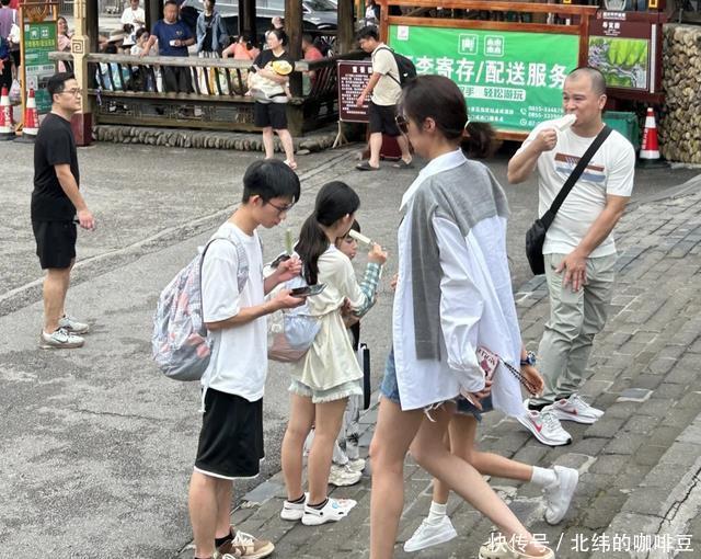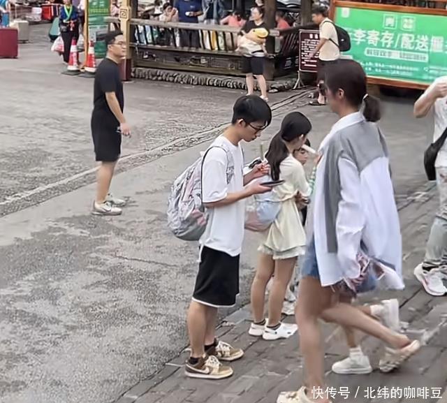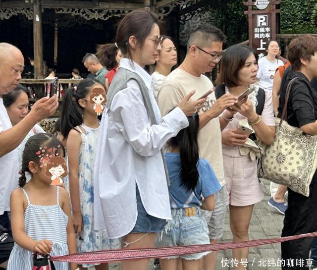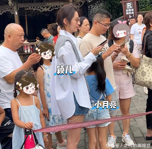 8月6日网友在贵州荔波景区偶遇颖儿带着女儿小月亮排队游玩融股宝。