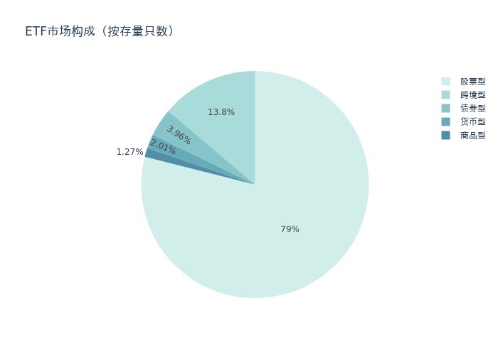 四、ETF存量市场情况上周市场上存量ETF共计1340只,其中股票型ETF1058只,债券型ETF53只,货币型ETF27只,商品型ETF17只,跨境型ETF185只。