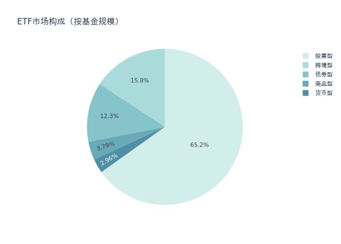 基金规模方面,上周ETF市场总规模达到57298.9亿元,较前一周增加280.39亿元。其中,股票型ETF为37340.58亿元,债券型ETF为7061.18亿元,货币型ETF为1694.52亿元,商品型ETF为2170.86亿元,跨境型ETF为9031.76亿元。